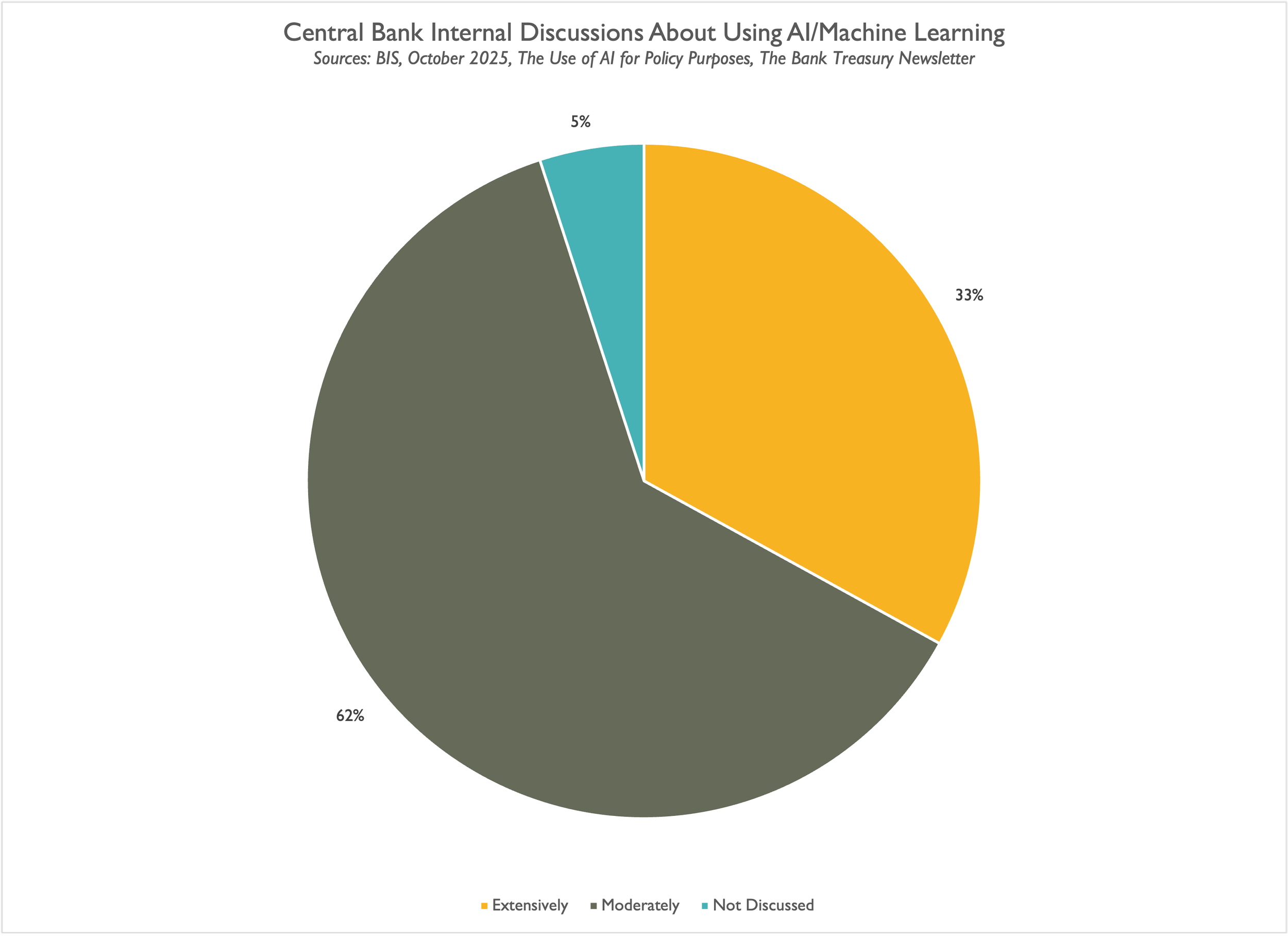 From the largest to the smallest banks, finding scalable and identifying profitable opportunities to integrate the latest artificial intelligence (AI) technology into operations is among every bank treasurer’s list of top priorities for 2026. Adoption at this stage is still experimental, but the key thing is that familiarity with the technology breeds more opportunities to incorporate it that may not be obvious at the outset. Building on the discussion in this month’s newsletter, the slides in the chart deck examine the use cases bank treasurers can already see for it, the general uncertainties and reservations they have about it, and the economics and realities that are pushing them towards and away from adoption.