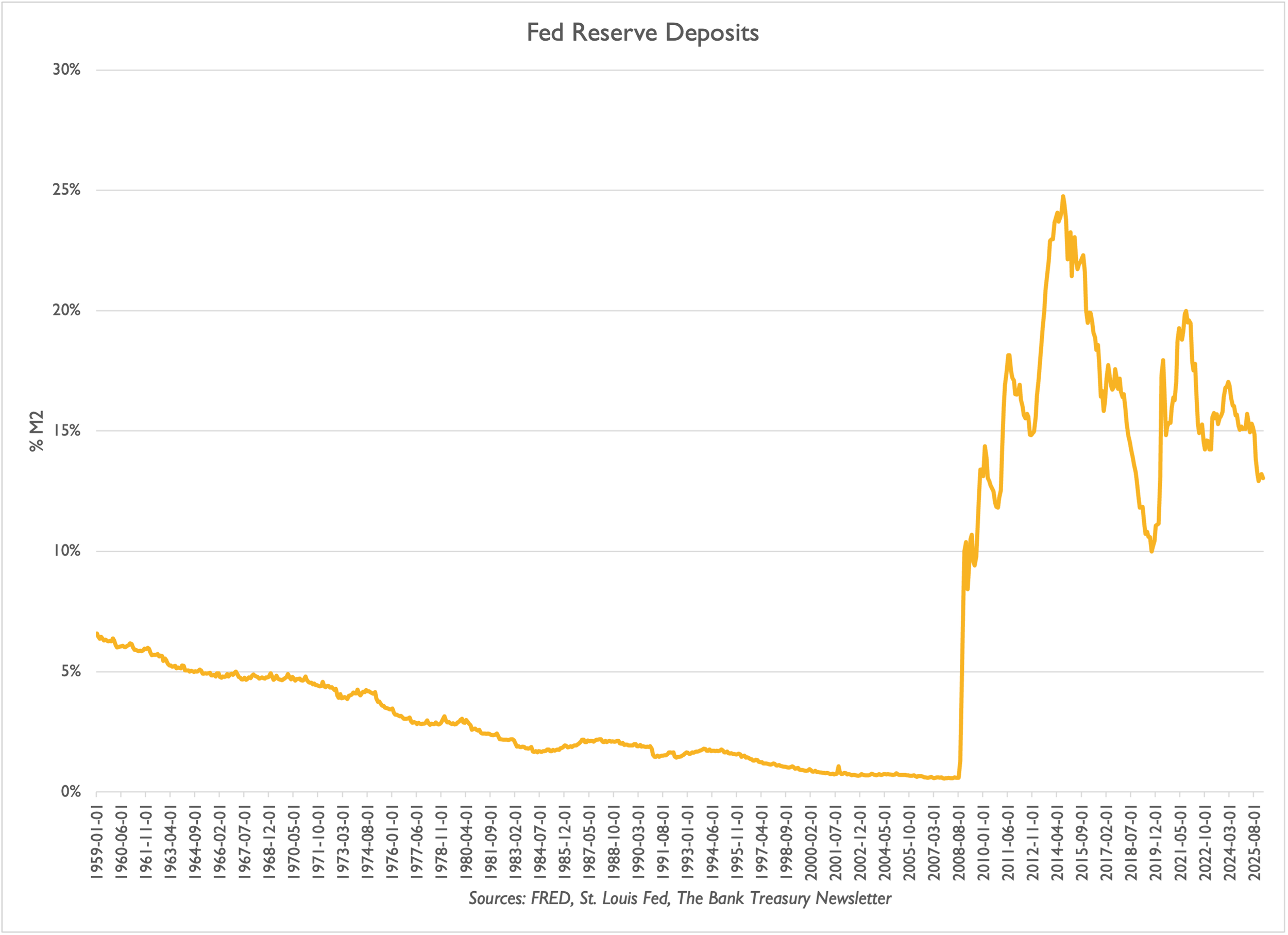 He is a proponent of the theory that the Fed’s balance sheet is too large, a view he shares with Fed Governor Stephen Miran, Treasury Secretary Scott Bessent, and other members of or those engaged with the Hoover Institute. If he could, he would reverse the Fed’s entire “ample” reserve policy, begun with Quantitative Easing during the GFC, and return to a world of scarce reserves. Maybe not right away, and maybe not all the way back to scarce reserves, but that would at least be his goals for the balance sheet.