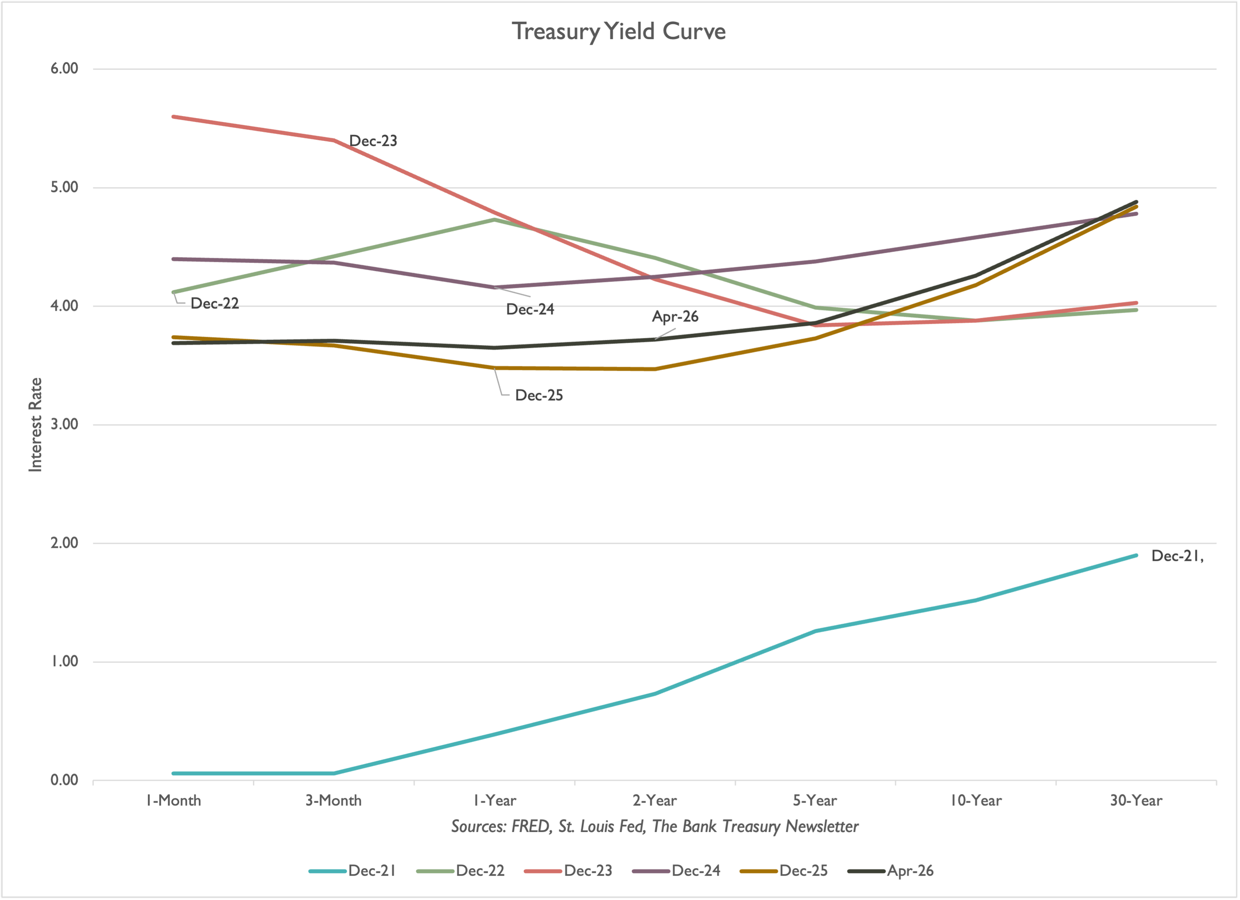 Figure 2: Treasury Yield Curve, December 2021-April 2026